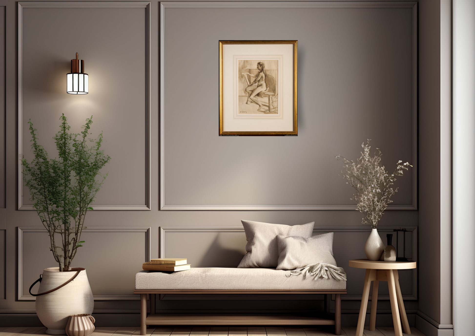 Roland Suddaby 1912 -1972, was an English watercolourist and oil painter. Suddaby predominately painted in watercolour and mostly landscapes form his home in Suffolk. However he won a scholarship at the Sheffield College of art and studied studied there until 1926, he then travelled to London in 1931 and exhibited at the Wertheim and The Redfern Galleries. At the start of WW11 he moved out of London to the provinces like some other artists who had experienced their studios and works lost or damaged through the bombing. This watercolour is a monochrome brown wash and is quite rare for Suddaby who was a landscape artist, consequently we concluded that this picture was painted when he was at art school, Sheffield, and it almost certainly dates before 1926. He was already making a name for himself within the artists community and therefore signed the work, which in itself is unusual for a student as their works are generally much criticised during their early days and avoidance of such confrontation is regularly seen to be avoided and artists are known to hide or disguise their name, but not here. Whether he was known personally to the sitter is unknown but he was confident enough to sign it. Well done Roland !