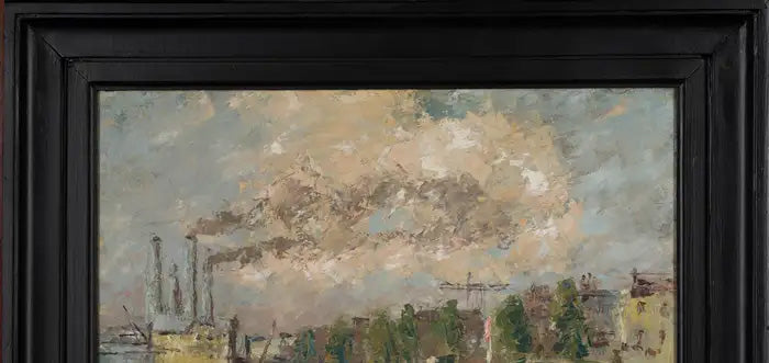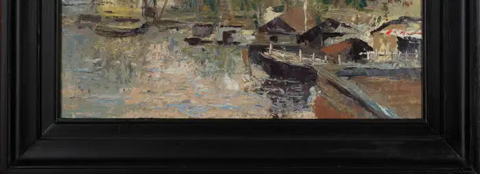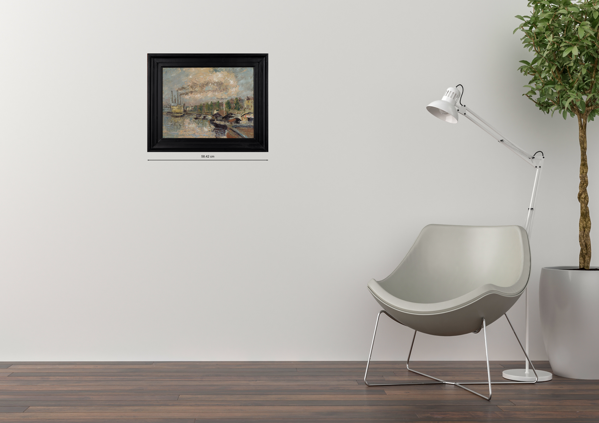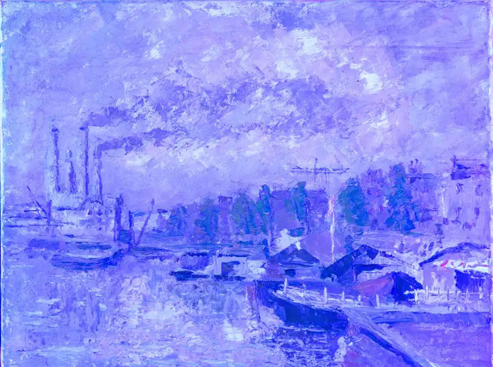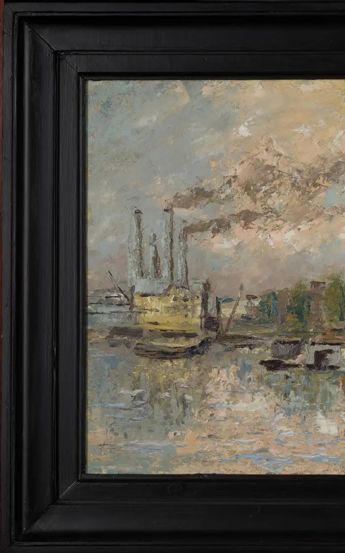 In the manner of Claude Monet, 1840 - 1926. Monet was a French impressionist painter. In 1870 as a result of the Franco- Prussian War he moved to London where he carried out a number of paintings the majority of which focused around various subjects on the Thames. This picture is, date unknown, of the Thames houseboats and includes the images of the Battersea power station which is painted in the manner of Monet and the label on the reverse side states that it was painted by Christine Cole, however this is a highly accomplished work by a talented professional artist and there is a question over the legitimacy of the label, consequently this work has been catalogued as 'In the manner of' and not by the artist that was named on the reverse side. We have not contacted the named painter as our resourceful researcher has now retired and we are left to find another researcher. However a new owner may wish to establish the facts of the work, there are professional images to follow and we have included the before and after restoration cleaning and a number of Infrared images. This picture is unsigned.