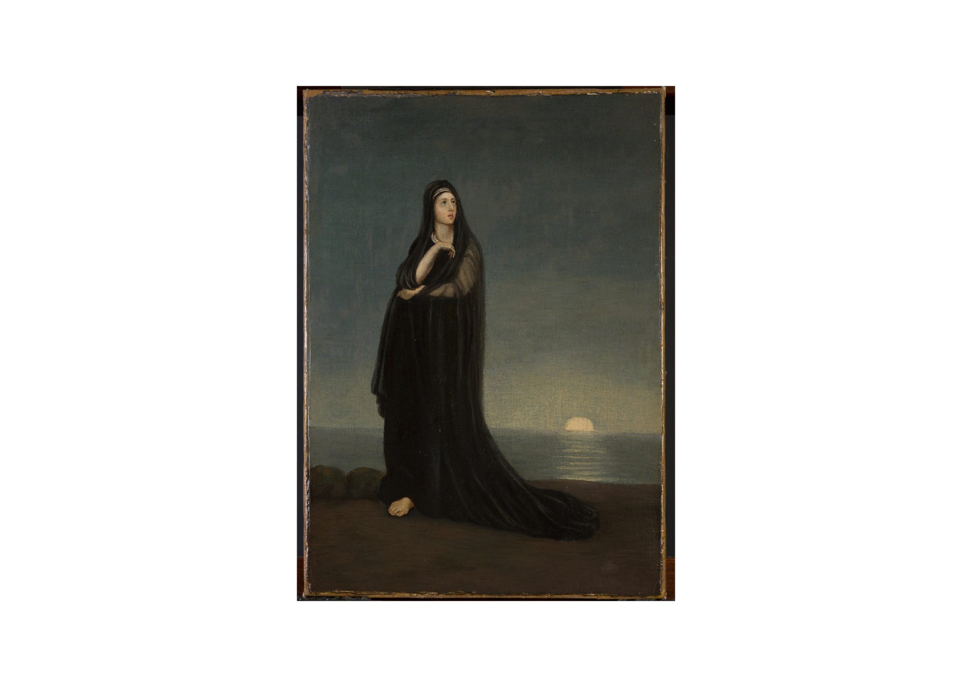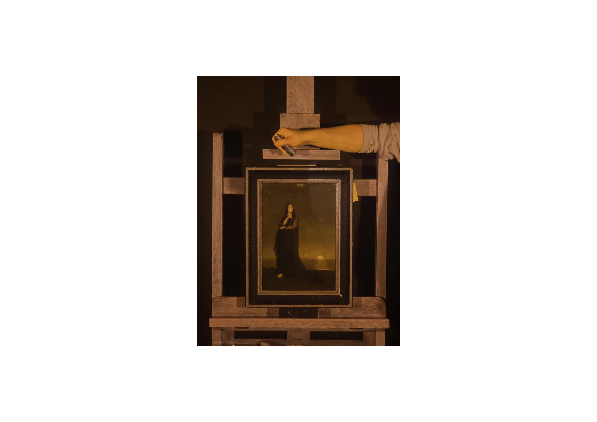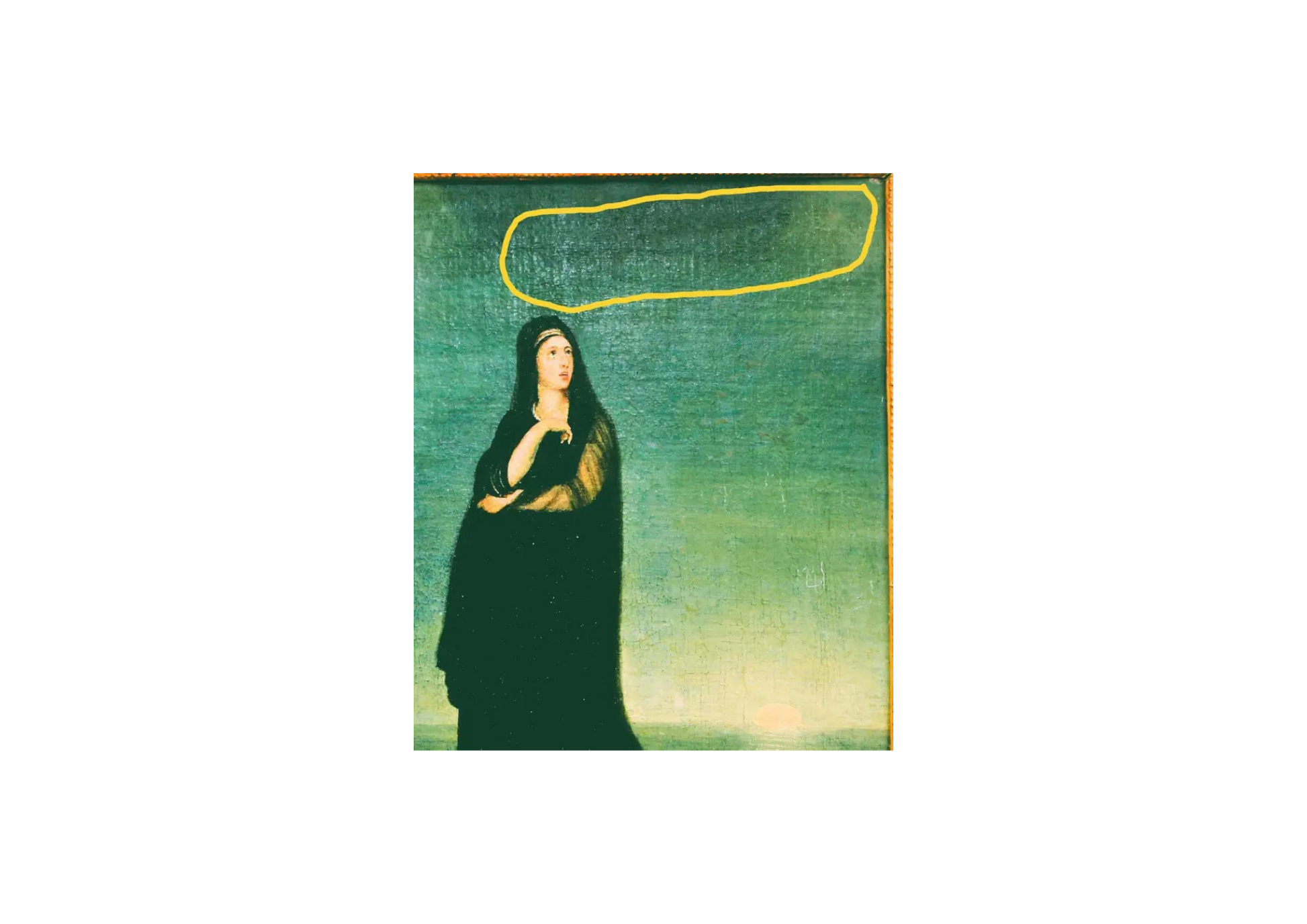 Alexandre - Gabriel Decamps 1803 - 1860 was a French painter known for his middle Eastern and North African art subjects. Decamps was one of the first painters to travel to the East, known as an Orientalist painter he painted scenes from the scriptures including subjects such as Joseph, Moses and Samson among others. A great believer in the afterlife as this picture represents, a lady who has suffered the loss of a loved one only to realise that he lives upstairs in Heaven, Infrared images enclosed show two cherubs and the image of a man. Decamps was a lover of animals and he regularly painted humorous and unusual scenes of monkeys teaching in a classroom and others including a group of monkeys examining paintings, a result thought to relate to some of his earlier works being rejected by the Salon in Paris. He was the first famous Orientalist painter who was widely respected for painting scenes of everyday life subjects from French, Algerian and Turkish daily themes, furthermore he was regarded as one of the leading artists in Paris alongside Delacroix and Ingres. He enjoyed hunting, shooting and riding as can be seen in his biography of work, he died following a horse riding accident in the Forest of Fontainebleau in 1860, there is an abundance of biographical history available throughout the internet and it would be an injustice to the man to attempt to deliberate further on such a great artist and consequently I would advise any potential new owner of this work to investigate Decamps further. The work is signed in the sky, photo enclosed, this was obtained by Infrared photography, however an improved depiction could be obtained with multi-spectral imaging but the cost of this is still prohibitive at this time.