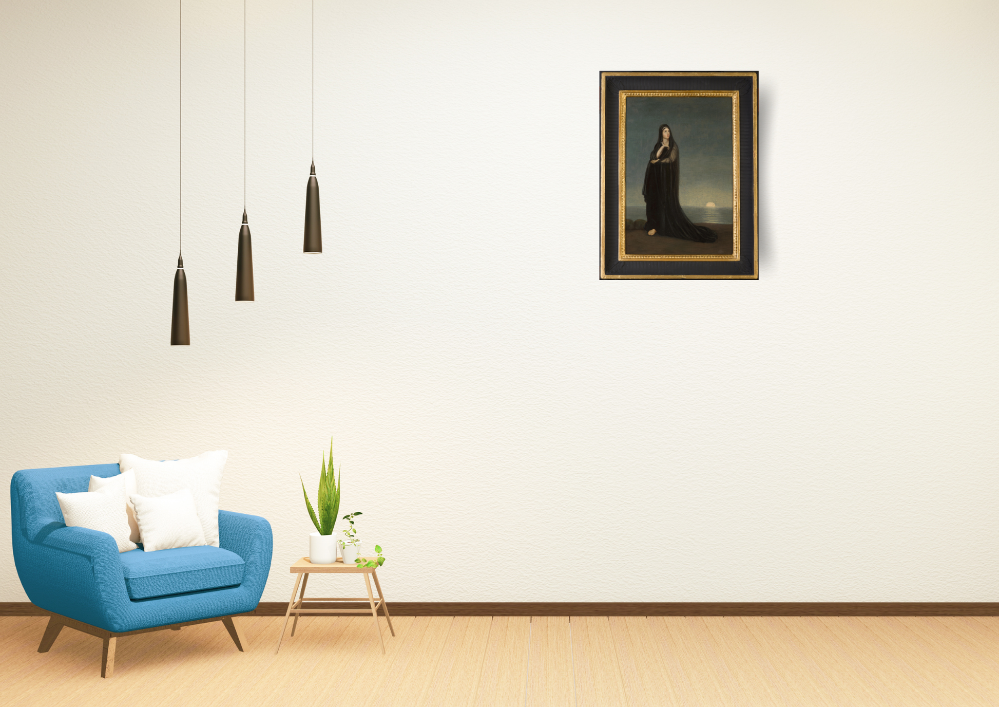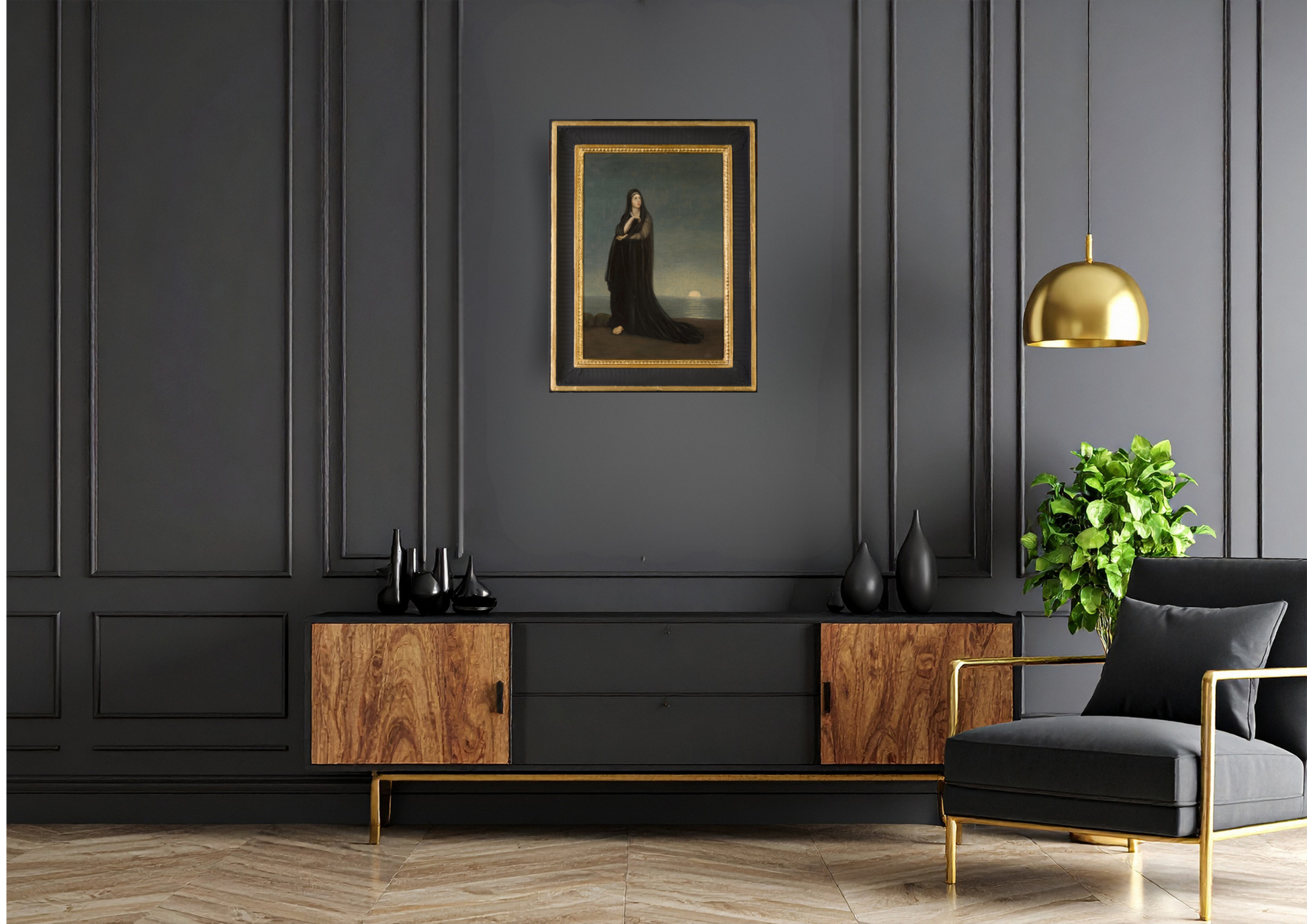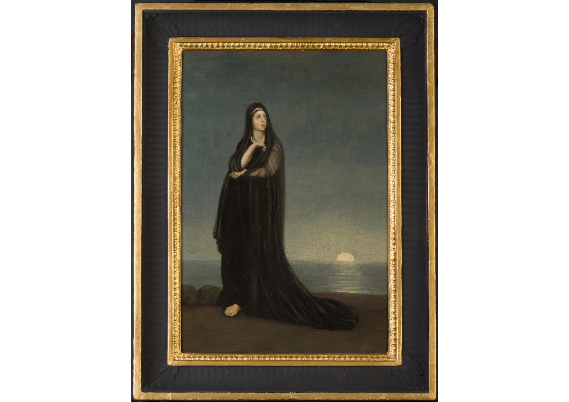 Alexandre - Gabriel Decamps 1803 - 1860 was a French painter known for his middle Eastern and North African art subjects. Decamps was one of the first painters to travel to the East, known as an Orientalist painter he painted scenes from the scriptures including subjects such as Joseph, Moses and Samson among others. A great believer in the afterlife as this picture represents, a lady who has suffered the loss of a loved one only to realise that he lives upstairs in Heaven, Infrared images enclosed show two cherubs and the image of a man. Decamps was a lover of animals and he regularly painted humorous and unusual scenes of monkeys teaching in a classroom and others including a group of monkeys examining paintings, a result thought to relate to some of his earlier works being rejected by the Salon in Paris. He was the first famous Orientalist painter who was widely respected for painting scenes of everyday life subjects from French, Algerian and Turkish daily themes, furthermore he was regarded as one of the leading artists in Paris alongside Delacroix and Ingres. He enjoyed hunting, shooting and riding as can be seen in his biography of work, he died following a horse riding accident in the Forest of Fontainebleau in 1860, there is an abundance of biographical history available throughout the internet and it would be an injustice to the man to attempt to deliberate further on such a great artist and consequently I would advise any potential new owner of this work to investigate Decamps further. The work is signed in the sky, photo enclosed, this was obtained by Infrared photography, however an improved depiction could be obtained with multi-spectral imaging but the cost of this is still prohibitive at this time.