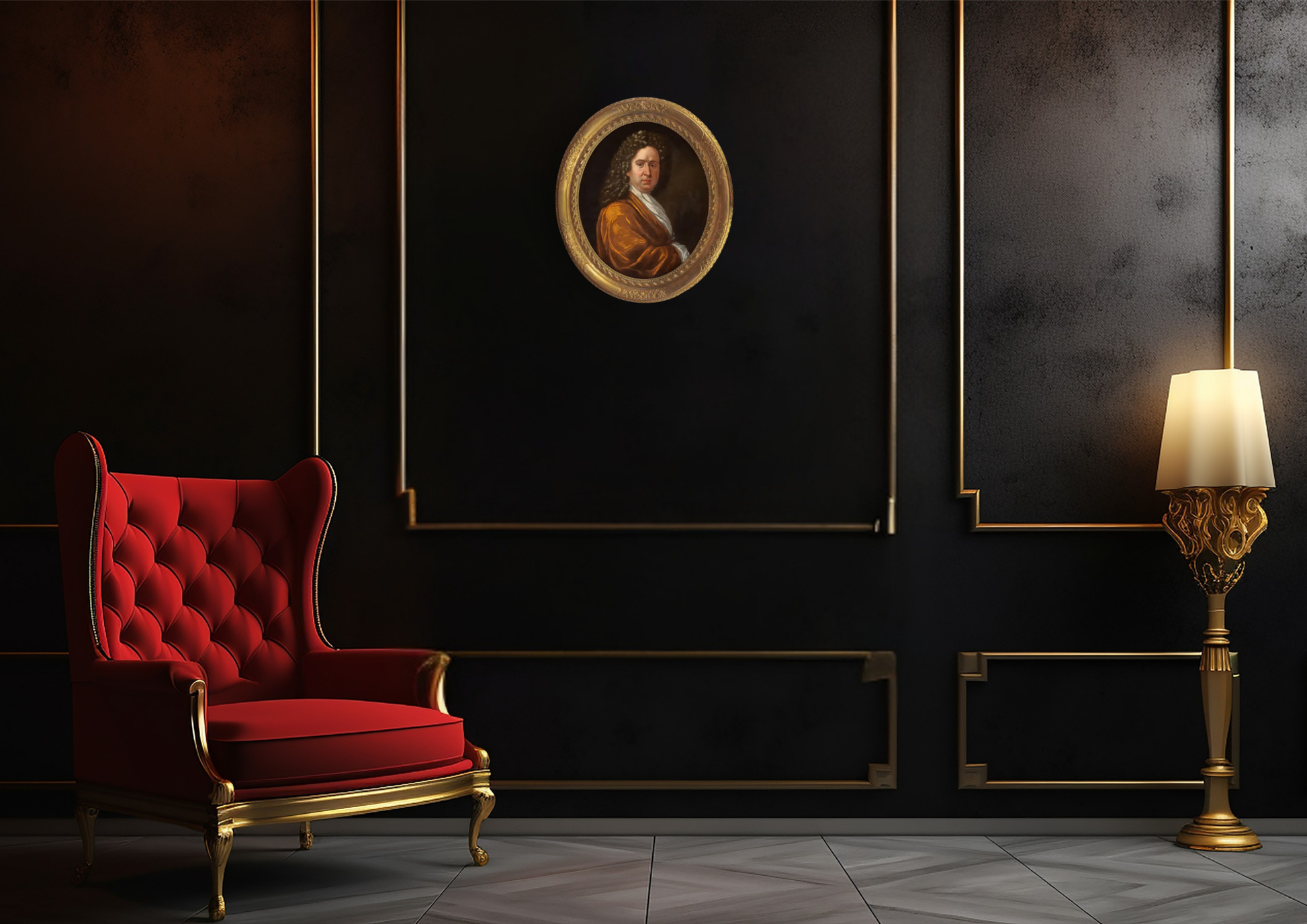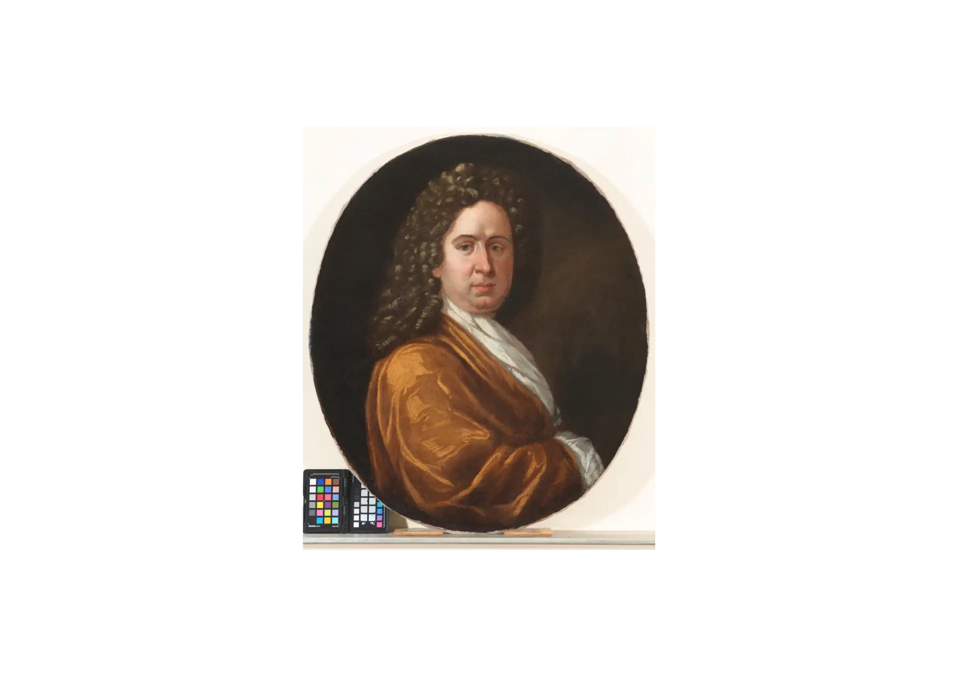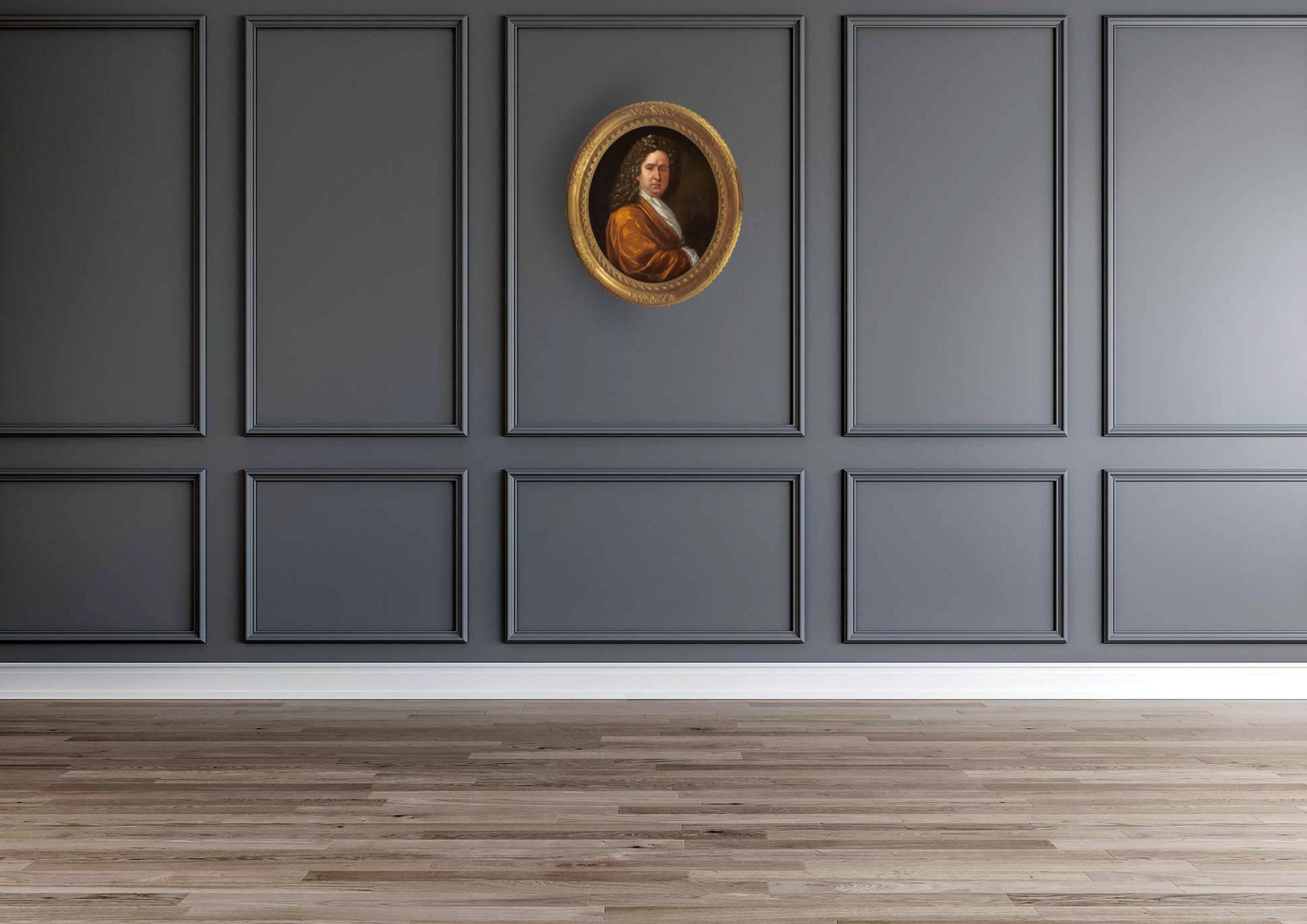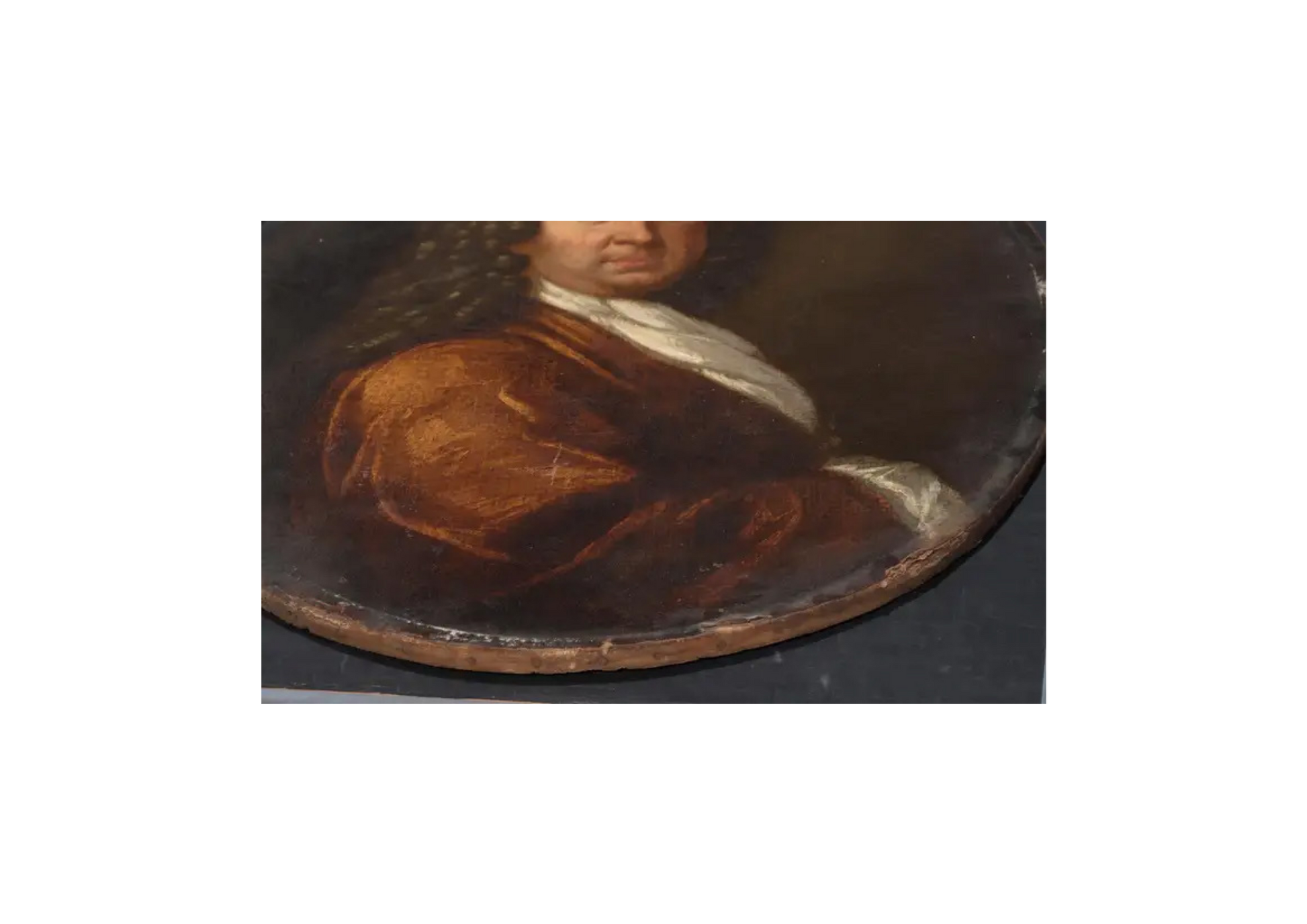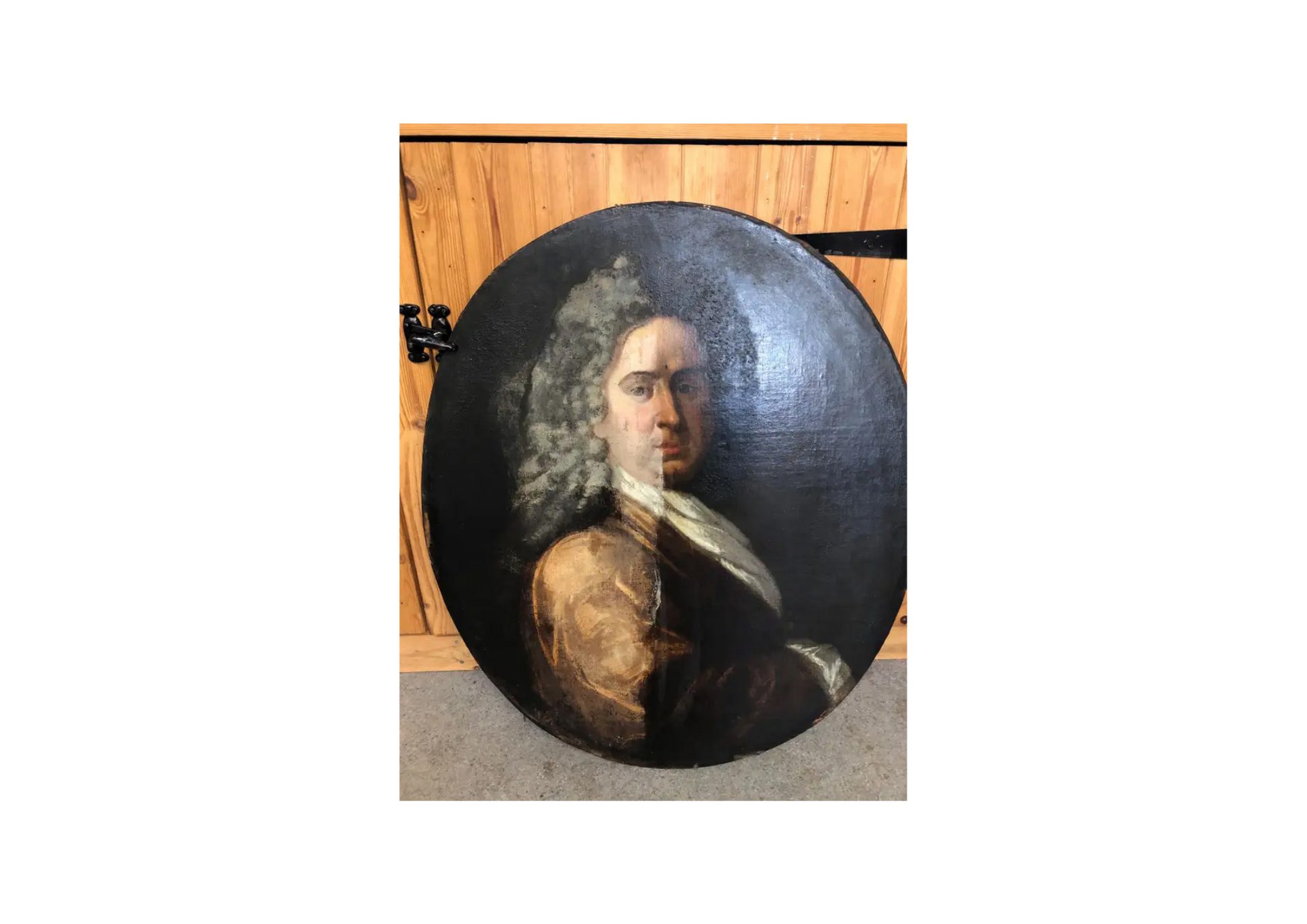 Sir Godfrey Kneller 1646-1723, was a German born English portrait painter. He was a pupil of Bol and Rembrandt, he was born in Leiden, travelled to Rome, Venice, Hamburg and later to London where he became painter in ordinary to Charles II. He painted a large number of portraits maintaining a studio with many apprentice painters and pupils who assisted him with the demand for his services as a portrait painter. This painting of Lord Russell 1639-1683, was discovered in Surrey adjacent to the County of the seat of Lord Russell, the picture which had clearly remained in the immediate area from it's earliest production was in it's original state and had been re-lined probably in the late 18th or early 19th Century, it required a full conservation by our restorers and was again relined after having removed the previous loose and somewhat detached earlier re-lining. It is in what we believe the 17th Century original frame. The history of William Lord Russell is fairly extensive and it would be an injustice to his memory to attempt a biography, if I may suggest the foremost account is in the Encyclopaedia Britannica 11th Edition 1911, there are later editions. The size including the frame is approx. 37"x33"