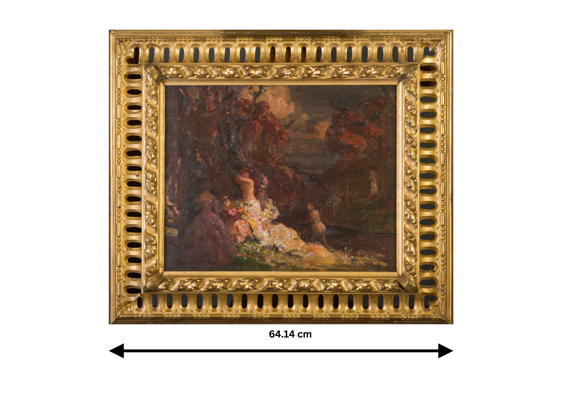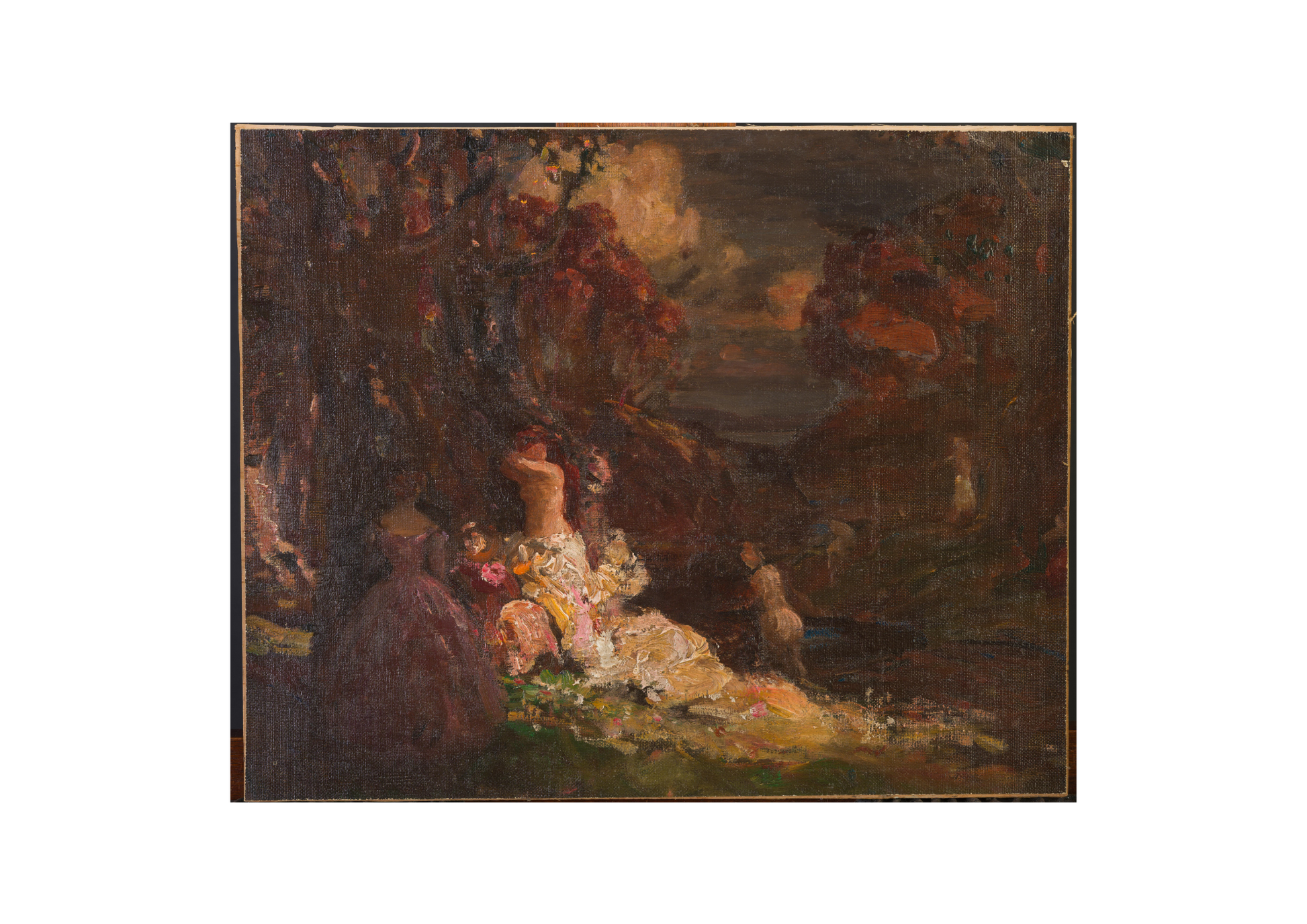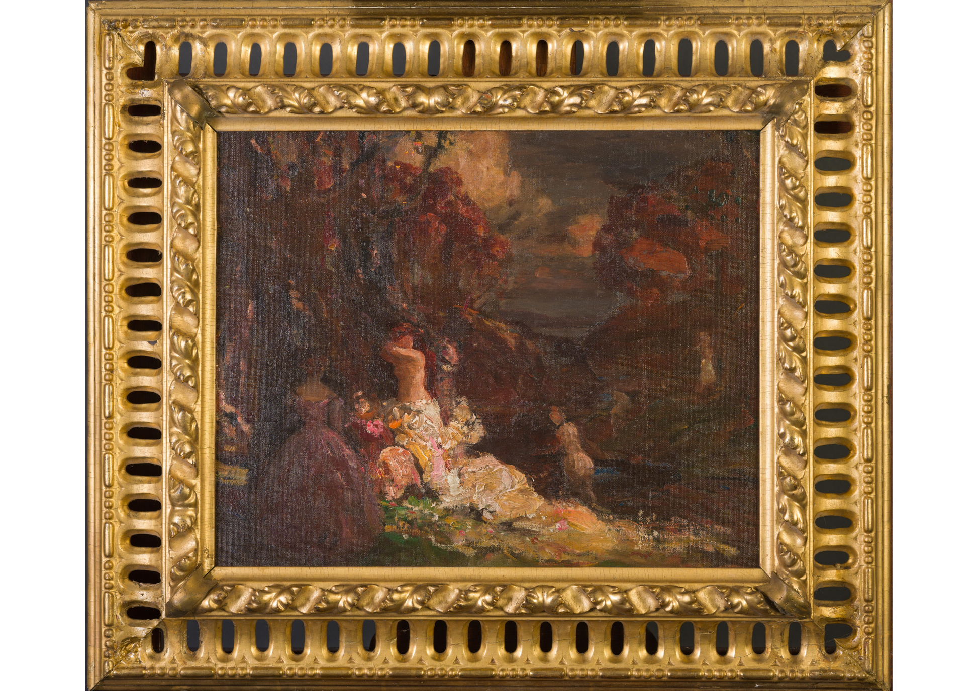 Adolphe Joseph Thomas Monticelli 1824-1886, was a French painter and influencer of Vincent van Gogh. Monticelli was well known to Theo and Vincent Van Gogh, Theo acted as agent for Monticelli in order to sell his works, Vincent knew his paintings very well and was impressed by their thick impasto and unauthenticity with regards to the Salon authorities who thought him mad, consequently when Monticelli died Vincent wrote to Theo claiming that he would carry on where Monticelli left off. The similarity in their works is readily apparent and a style in which Vincent carried on to his own demise. Monticelli was a brilliant artist and has been very much underrated, however during his lifetime he was in great demand especially here in the UK, the Scottish art dealer and collector Alex Reid was a big buyer of his paintings so much so he was known as Monticelli Reid. Monticelli trained in Paris at the Ecole des Beaux Arts and under Paul Delaroche, he is known to have painted with the Barbizon School of painters in the forest of Fontainebleau, where this image may have been inspired and designed, he was influenced in the Romantic style of Watteau. His works are still widely sought and collected despite the general lack of recognition throughout the World's art aficionados who regularly deny his brilliance, I think he is great.