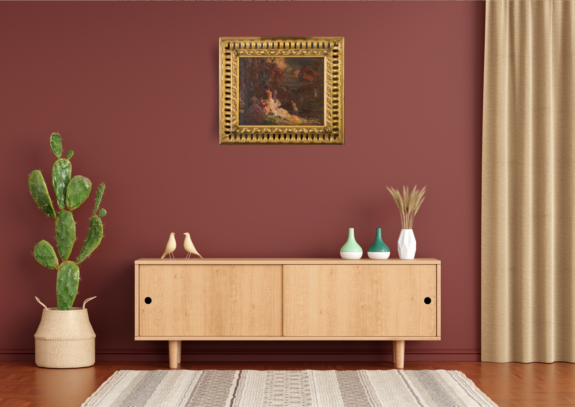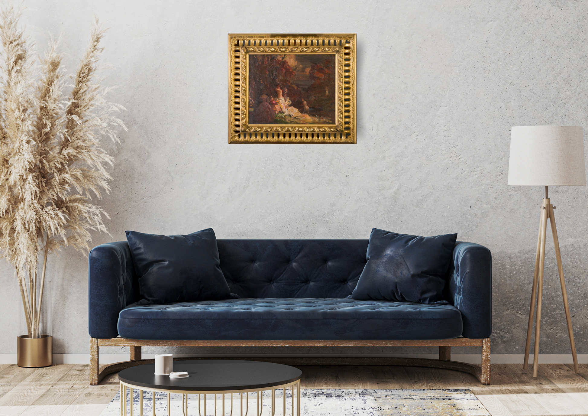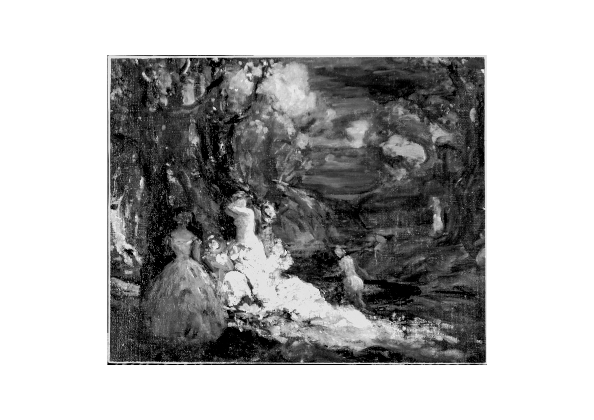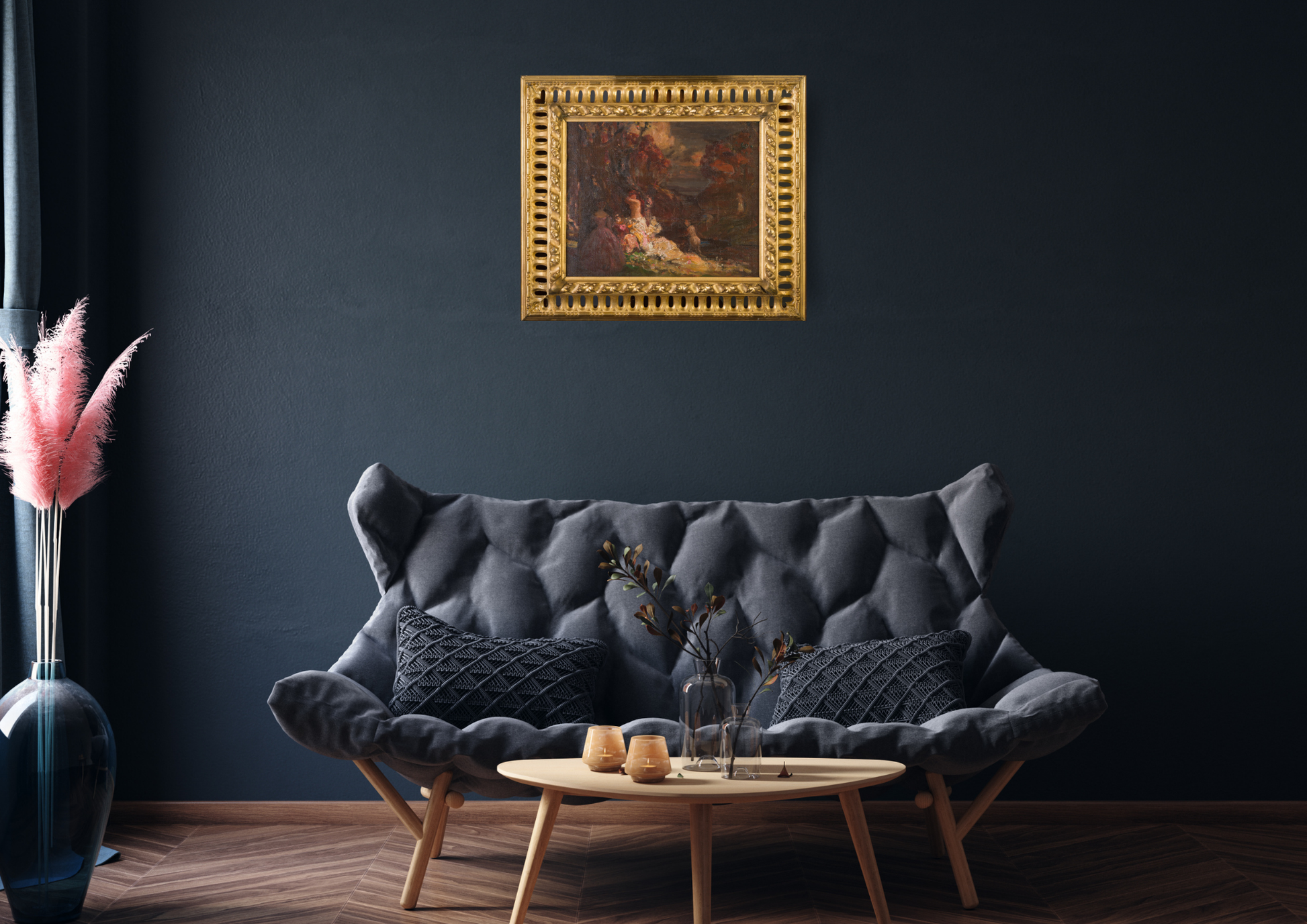 Adolphe Joseph Thomas Monticelli 1824-1886, was a French painter and influencer of Vincent van Gogh. Monticelli was well known to Theo and Vincent Van Gogh, Theo acted as agent for Monticelli in order to sell his works, Vincent knew his paintings very well and was impressed by their thick impasto and unauthenticity with regards to the Salon authorities who thought him mad, consequently when Monticelli died Vincent wrote to Theo claiming that he would carry on where Monticelli left off. The similarity in their works is readily apparent and a style in which Vincent carried on to his own demise. Monticelli was a brilliant artist and has been very much underrated, however during his lifetime he was in great demand especially here in the UK, the Scottish art dealer and collector Alex Reid was a big buyer of his paintings so much so he was known as Monticelli Reid. Monticelli trained in Paris at the Ecole des Beaux Arts and under Paul Delaroche, he is known to have painted with the Barbizon School of painters in the forest of Fontainebleau, where this image may have been inspired and designed, he was influenced in the Romantic style of Watteau. His works are still widely sought and collected despite the general lack of recognition throughout the World's art aficionados who regularly deny his brilliance, I think he is great.